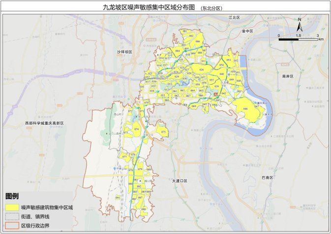 附圖1.九龍坡區噪聲敏感建筑物集中區域分布圖
