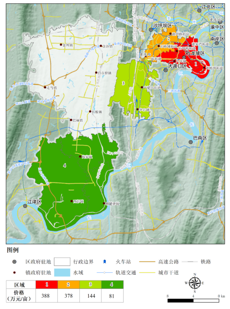 九龍坡區(qū)土地劃撥片區(qū)價(jià)格分布圖